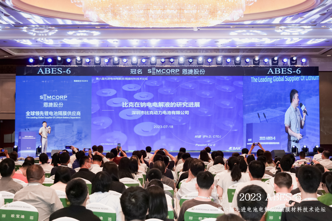 Utilizing the semi-solid state and sodium-ion technology, BAK Battery is currently delving into a novel path for enhancing the performance of sodium-ion batteries. On the 18th and 19th of July, 2023, the 6th International Forum on Electrolyte & Separator Materials for Advanced Batteries (ABES-6) was grandly held in Suzhou. Dr. Lin Jian from Shenzhen BAK Power Battery Co., Ltd. took the stage to share the latest research advancements in sodium-ion electrolytes. During the forum, Dr. Lin engaged in extensive discussions and exchanges with distinguished experts, industry peers, and other esteemed guests from both domestic and international spheres, exploring the forefront of semi-solid state sodium-ion battery technology for its high-quality development.